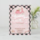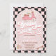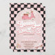 Retro style third birthday invitation for a girl featuring a scooter, daisies, skateboard, roller blades, wavy checkerboard and non editable retro style heading.