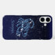 Phone case featuring the zodiac symbol for Scorpio in soft silver blue, overlaid with the stars of the constellation, against a starry sky background graded from deep midnight blue to black.