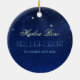 Zodiac ornament in dark blue featuring the constellation of Scorpius on a dark blue sky. On the back, you can add name and birth date of the person receiving this gift.