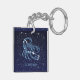 Porte - clé avec le symbole zodiaque pour Scorpio en bleu argenté doux, recouvert d'étoiles de la constellation, contre un arrière - plan ciel étoilé classé de bleu nuit profond à noir.