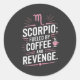 Scorpio: Fuelled by Coffee and Revenge Funny Quote Classic Round Sticker