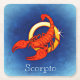 Colourful illustration features blue background with a red scorpion - the symbol of astrological zodiac sign Scorpio (Oct. 23-Nov. 21).