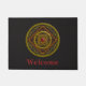 This mandala was designed for the zodiac sign, Scorpio, depicting a ruby stone in the centre surrounded by elements representing the sign, such as the symbol for the sign, the constellation, and the alchemical symbol for Water, as well as filigree vines and weaves wrapping it all into a solid image in shades of red, gold, and black. Customize the text on this doormat with your own preferred greeting or remove it entirely to make a unique decoration for your entryway.