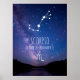 Our Scorpio birth sign poster is the perfect gift for anyone who is inspired by astrology and new age mystic home decor. With a beautiful dark starry sky backdrop the constellation of Scorpio sits above the text and zodiac symbol. The horoscope text can be easily personalized and all elements can be resized, recolored or moved around - just tap to customize further.