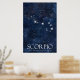 Scorpio star sign poster with name, star sign zodiac art piece, with the stars of the Scorpio constellation (Scorpio Dates: October 23-November 21). The poster can be printed up to giant size (24x36inches) without loosing quality. This artwork has beautiful subtle detail within the indigo blue background, and of course the stars themselves.