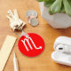 Scorpio symbol in white on a red background.