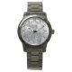 A Scorpio zodiac symbol in grunge distressed silver steel metallic style print background decor. A modern urban racy design for a great custom birthday fashion watch gift idea.
