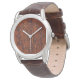 A Scorpio Zodiac Sign applique in a rich brown Mahogany wood grain style print decor. A classy modern design for a great custom birthday fashion watch idea.