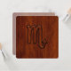 A Scorpio Zodiac Sign applique in a rich brown Mahogany wood grain style print background. A classy modern design for a great custom birthday gift idea.