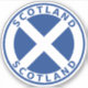 Round flag of Scotland with text Scotland.