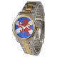 Very good quality watch that looks good whether dressing up or down. The band is sturdy. The watch is rather large so might not work for smaller folks. Recommended as a good gift. Printing is just a touch light but adds a nice touch of personalization.