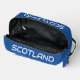 Scotland flag personalized toiletry travel bag. Custom blue Dopp Kit with cool design. Personalize with name or monogram optionally. Colours can be changed too.