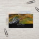 Photograph of a picturesque landscape in Scotland. Colourful rolling hills, large rocky stones and mountains with a brightly lit sky. Professional business card.