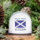 Personalized snow globe shows the Scot or St. Andrew's Cross Flag with the word SCOTLAND below in the flag colours. Above, in blue text, add a name. Create a special gift for someone of Scot ancestry. Makes a lovely holiday gift or stocking stuffer.