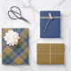 Scott Mustard Blue Modern Scottish Tartan Wrapping Paper Sheet