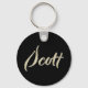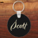 Ein sehr schöner edler personalisierter Button Schlüsselanhänger im whitegold Lettering Look auf schwarz für Scott.