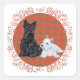 Scottie with Westie puppy. A new addition to the family, West Highland White Terrier puppy looks up to the family Scottish Terrier for guidance (and maybe some mischief !) My two did everything together, what fun! Created from my original painting, this design is available on clothing, novelty and gift items!
