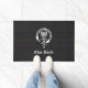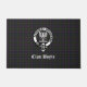 Front door mat features Scottish Clan Boyle crest badge & tartan, with customizable text.