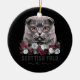 Scottish Fold Cat Mom Floral Ceramic Ornament