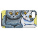 Blue and blue/white bicolor Scottish Fold cats snuggle together in this ink & pencil illustration by Andie. Great gift idea for lovers of this charming breed.