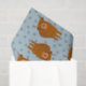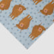 This patterned tissue paper features illustrations of Scottish Highland Cattle with reddish brown fur set against a pale blue polka dot background.