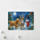 This Scottish highland cow and reindeer playing in the snow by a snowman on a moonlit night makes a cute Christmas holiday graphic. You can easily personalize the text with this template.