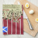 This kitchen towel for Scottish independence supporters features a photograph of a fragment of the Declaration of Arbroath written in Latin and signed on April 6th, 1320, at Arbroath Abbey, six years after Robert the Bruce defeated the English at Bannockburn in 1314. At the base of the manuscript are wax seals of the signatories. The background is a classic white stripe on red. The most quoted excerpt is, of course: 'For as long as but a hundred of us remain alive, never will we on any conditions be brought under English rule. It is in truth not for glory, nor riches, nor honors that we are fighting, but for freedom - for that alone, which no honest man gives up but with life itself.' You can change the red background color to suit with the customize button.