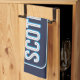 A bonnie design with blue and white saltire flag colours making up the sign of Scotland, backed up with the cheery toast "Here's tae us! Wha's like us?", and the response, "Gey few and they're aw deid!"