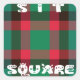 The image features a traditional tartan plaid pattern, a hallmark of Scottish textiles. Superimposed on this rich fabric are the words "SIT" and "SQUARE," arranged vertically. The word "SQUARE" incorporates small cartoonish figures embedded within the letters, adding a whimsical touch. The composition is balanced and focused, emphasizing both the tartan design and the text.