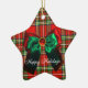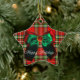 SCOTTISH TARTAN AND RED GREEN CHRISTMAS BOWS STAR CERAMIC ORNAMENT