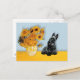 Sunflowers by Vincent Van Gogh, adapted to include a black Scottish Terrier.