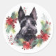 Scottish Terrier Christmas Wreath Festive Pup Classic Round Sticker