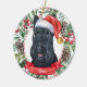 This sophisticated ceramic Christmas ornament features a watercolor of a cute black Scottish Terrier in a Santa hat, surrounded by holiday greenery, pinecones and berries, with a red banner with your pet's name (or change to Merry Christmas). You can fully personalize this design by changing the greeting and year on the back in an elegant font. This is a stylish, yet inexpensive, custom Christmas ornament, and it's perfect for Scottish Terrier lovers, Terrier fans, scotty enthusiasts, dog lovers, and pet lovers.