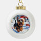 Scottish Terrier Running Snow with Christmas Hat Ceramic Ball Christmas Ornament
