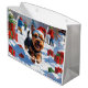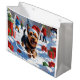 Scottish Terrier Running Snow with Christmas Hat Large Gift Bag