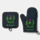 Scottish Thistle on Dark Tartan Custom Name Oven Mitt & Pot Holder Set