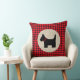 This Cute Throw Pillow features a black scottish terrier on a black and red buffalo plaid background.