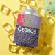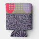 This can cooler has a mid-century modern abstract design with three different backgrounds, zigzag lines, ovals, and circles, in navy, light blue, red, khaki, and lavender. If you want the same design with different colours, message me.