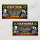 This is a double-sided scrap metal business card with English on the front and Spanish on the back.