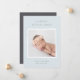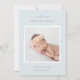 Une faire-part de naissance élégante aux couleurs douces présente une photo carré de nouveau-né encadrée en blanc, avec "bienvenue [Nom]" en haut en lettres gris chic. Personnalisez avec la date de naissance du bébé, et les statistiques de naissance en dessous, et ajoutez un message personnel à l'arrière, ainsi qu'une photo supplémentaire.