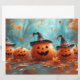 Once upon an autumn dusk in the sleepy hamlet of Ember Hollow, a peculiar sight awaited any who dared wander near the old Bentley farm. There, in a clearing kissed by the setting sun, sat four pumpkins, each crowned with a tattered witch's hat. Unlike the cheerful jack-o'-lanterns adorning the porches of neighbouring homes, these pumpkins bore an air of solemnity, their carved faces etched with runes of old.