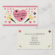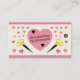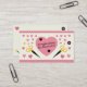 A scrap booking business card decorated with scissors, a star, and a flower, a large pink heart in the background, small hearts scattered around and pink rounded borders. Perfect for card makers, scrapbooking, crafts, kids activities, etc.