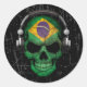 Scratched Brazilian Dj Skull with Headphones Classic Round Sticker
