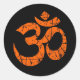 Scratched Orange Yoga Om Symbol on Black Classic Round Sticker