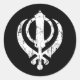 Scratched White Sikh Khanda Symbol on Black Classic Round Sticker