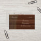 A business card template for wood furniture restorers with a digital pattern of dark mahogany coloured wood showing a before and after view of scratched and stained wood grain and clean wood after treatment.