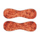 Manifold scratches upon scratches on a lightly spotted coral background. If you have a good imagination, you can find some forms that look a bit like rock art.