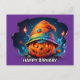 scray jackolantern with birthday hat pyschedelic postcard