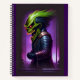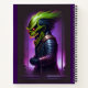 A cartoon demon head with green hair, sharp teeth, and red eyes on a purple and black background creates an awesome spiral notebook for any heavy metal fan.