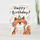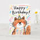 A vibrant Happy Birthday card with a colourful Scribble sketch cat design, Fun,playful, and full of character, Ideal for cat lovers, and perfect for adding smiles and birthday cheer. Blank Inside for your own message.